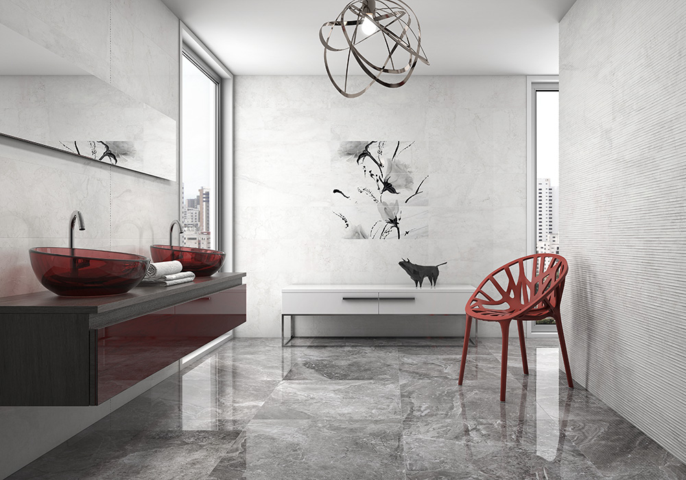 Wandfliese ist eine sehr leicht pflegbare Fliese. Sie gibt einem Badezimmer einen ruhigen Kontrast und ist kombinierbar.